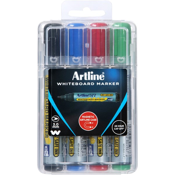 Artline 577 Whiteboard Markers Bullet - Hard Case - 4 Assorted Colours - Pack Of 4