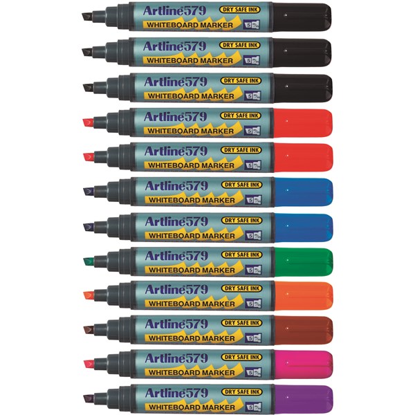 Artline 579 Whiteboard Marker Chisel Point - 8 Assorted Colours Pack of 12