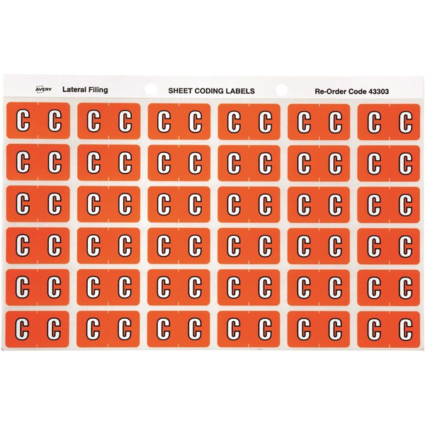 Avery Alphabet Coding Label C Side Tab 25x38mm Orange