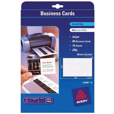AVERY C32015-25 BUSINESS CARDS I/Jet Dbl Sided 8/Sht Matt Wht Pack of 200