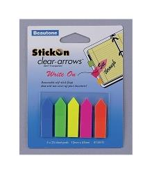 BEAUTONE STICKON CLEARFLAGS 25Sht Padx5 12x45 Asst