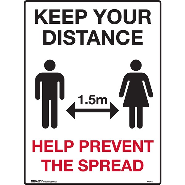 Help minimise the spread of COVID-19 in your facility with Brady's range of hygiene signs, social distancing signs Wording: Keep Your Distance (1.5M) Help Prevent The Spread Material: Multiflute Corrugated Plastic Size:H600 X W450mm