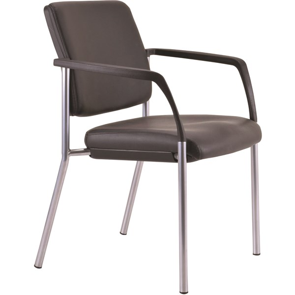 Buro Lindis 4 Leg Chair With Arms Silver Powdercoated Frame Black PU Seat and Back