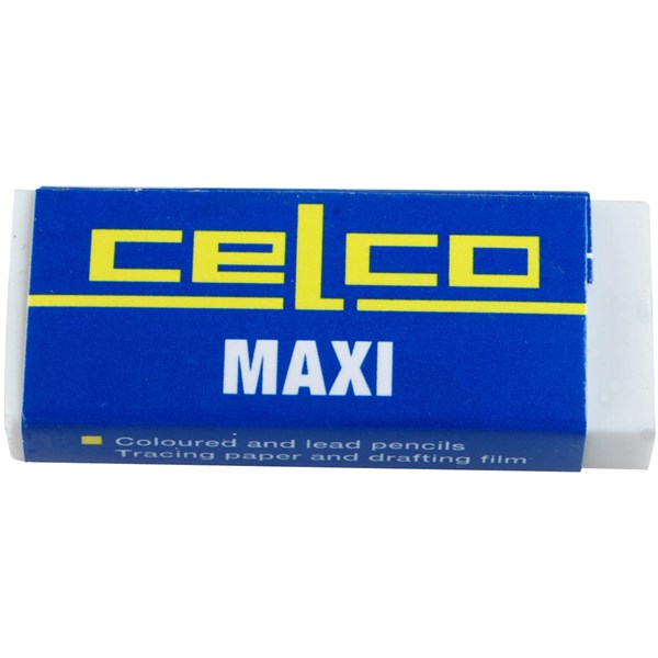 Celco Maxi erasers are environmentally friendly 100% Non poisonous raw material PVC Latex & phthalate free High quality rubber elasticity for use on lead and coloured pencils Smudge free