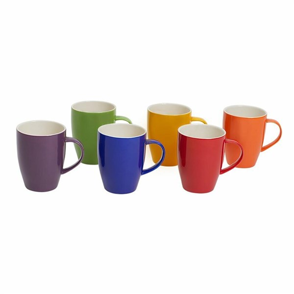 Set of 6 mugs in a range of assorted bright coloursReinforced porcelain crockeryMicrowave safeDishwasher safeThermal shock resistant