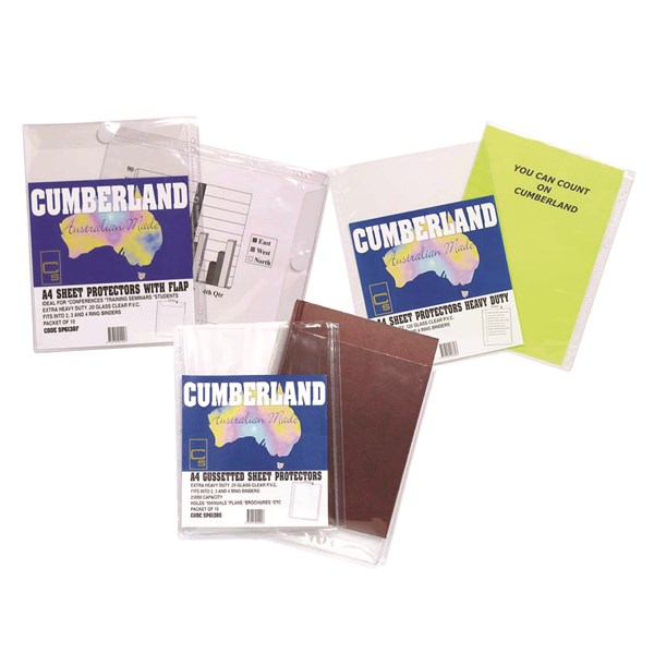 Glass clear PVC heavy duty sheet protectors. Punched to fit 2, 3 & 4 ring binders. Australian made.