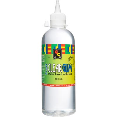 This non-toxic gum is ideal for paper, cardboard and textiles (pH neutral). It dries clear.