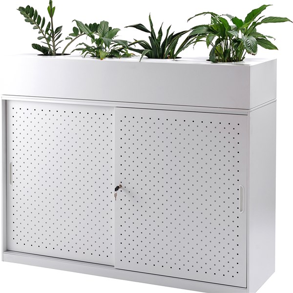 Delivery & Installations Charges May ApplyContact Our Team To Confirm The Go Planter box will sit on top of a Tambour door cupboard or Lateral Filing cabinetIt takes a 200mm pot and has an incorporated drip tray.Plants not included10 year warranty