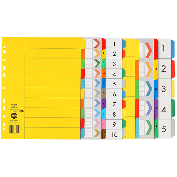 Marbig A4 Dividers Extra Wide 1-10 Tab Coloured