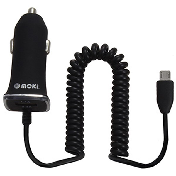 Moki fixed usb car chargers give you the convenience to charge your portable usb devices on the go. Along with a microusb 2.4amp fixed cable, there is also the 1.0a usb input port ideal for connecting any other usb charged device. Recharge via 2.4a fixed micro usb. 1.0a usb port for other devices. Compact coiled cable stretches up to 2m.