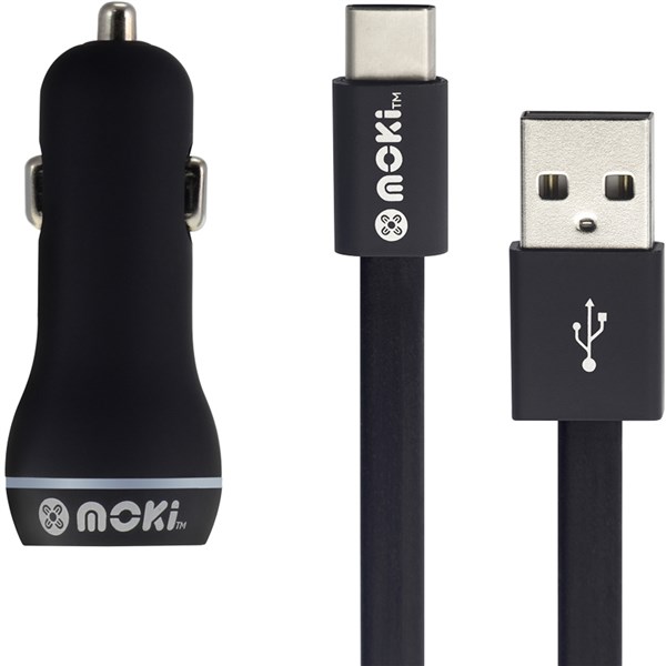 Moki USB Type-C Cable - With Car Charger Black