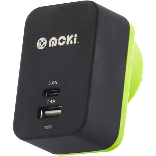 Moki wall charger+ brings new power to the moki charging range. The 3.0a type-c port can charge latest spec phones, tablets and other high capacity devices. also comes equipped with an extra 2.4a USB port. 12 months