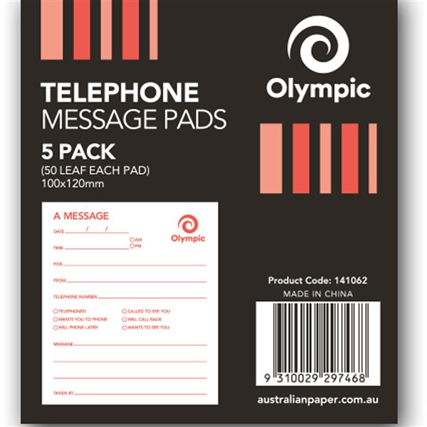 Olympic Telephone Message Pads 100x120mm 50 Leaf Pk5
