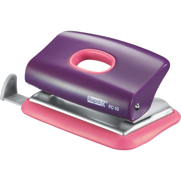Portable yet strong 2-hole punch. Metal core with outer made from reinforced ABS plastic. Adjustable paper guide and centre mark for easy lining up of paper. 10 sheet capacity