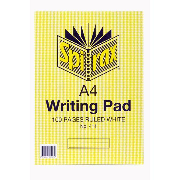 - A4 sized writing pad - 8mm Ruled Lines; - 100 pages of quality Spirax Paper; - Protective front cover with Board back page; - Top bound with overlay.;