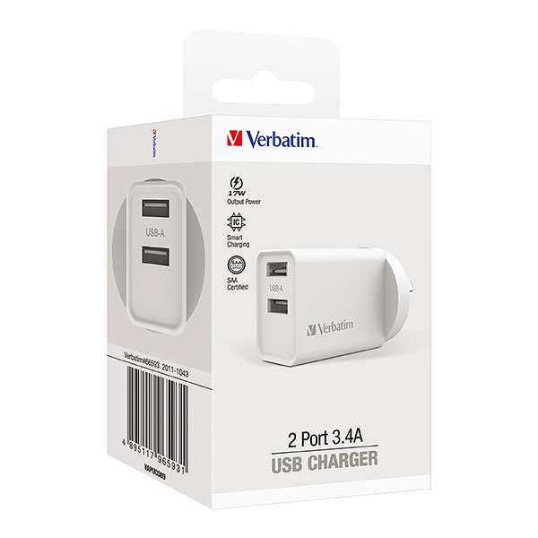 Verbatim Dual USB Port Wall Charger 3.4A