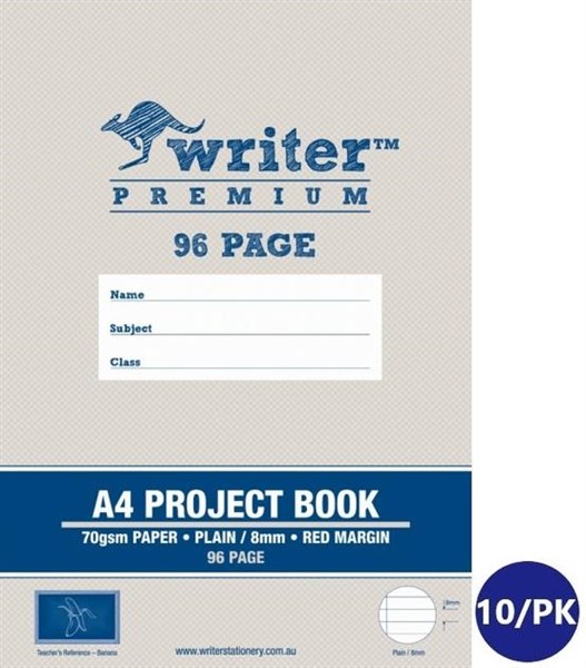 Writer Premium A4 Project Book 96 Page Plain/8mm Ruled + Margin Banana