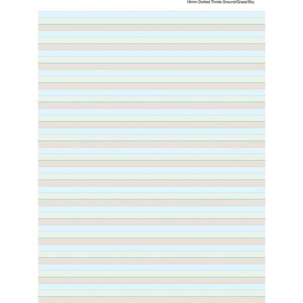 High quality 70gsm white paper. Brown (ground), green (grass), blue (sky) printed lines for learning to write. Glued at top with handy tear off pages.