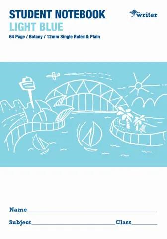Writer Student Note Book 250mm x 175mm Light Blue 64 Page -12mm Single Ruled & Plain Page