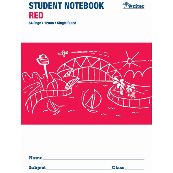 Writer Student Note Book 250mm x 175mm Red - 64 Pages 12mm Ruled